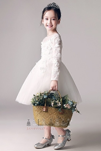 Дълги ръкави Бижу Природен кръста Дантела Формално Средно малко момиче рокля