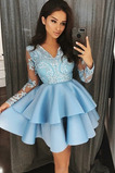 Cocktail Kjoler Kort-længde Cocktail Kjoler Lynlås Medium Flerlags Flerlags A-linje Udjævnede ærmer Cocktail Kjole