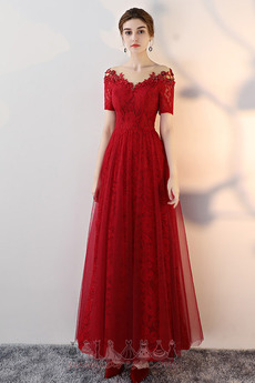 A scoop neck wedding dress with short sleeves is what I was looking for. I found it on this amazing site. I bought this dress for the party at my wedding. I was asked where I bought the dress from...It is so special and does not look cheap! If you hesitate in choosing this dress, BUY IT!