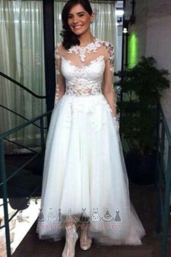 Νυφικά φορέματα Νυφικά φορέματα Παραλία νυφικό, Νυφικά φόρεμα Τούλι Μακρύ Μανίκι Ψευδαίσθηση Κόσμημα Φερμουάρ επάνω Ασύμμετρη