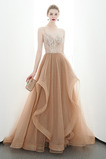 Vestido de Noche Natural Gasa Estrellado Sexy Abalorio Espalda Descubierta