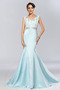 Peokleidid Backless Peokleidid Merineitsi Looduslik talje V-kaelus Keskmine Pikk Satiin Peokleit
