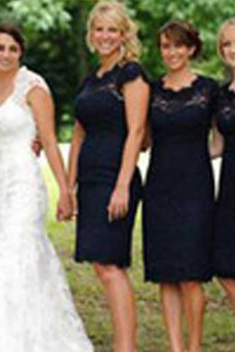 Kevät Pitsi Päärynä Jewel Collar Polvipituinen Natural Vyötärö Morsiusneitojen mekko Kevät Pitsi Päärynä Jewel Collar Polvipituinen Natural Vyötärö Morsiusneitojen mekko