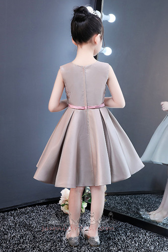 Bow Knee Length Accented Rosette Sleeveless Jewel Satin Flower Girl Dress