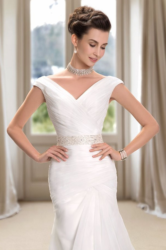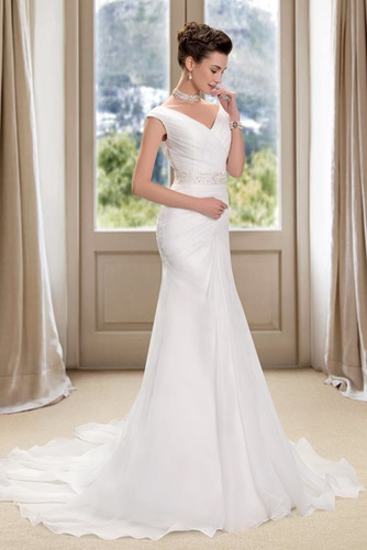 La robe de mariage Haut Bas Longue Romantique Sans Manches Traîne Mi-longue Fermeture éclair