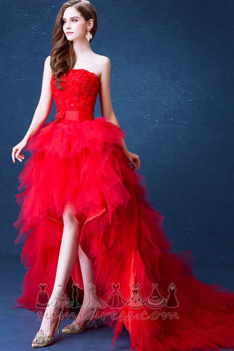Báli ruhák Tüll Báli ruhák Ujjatlan Csipke-up Aszimmetrikus Show / teljesítmény Bojt Vállnélküli Báli ruha