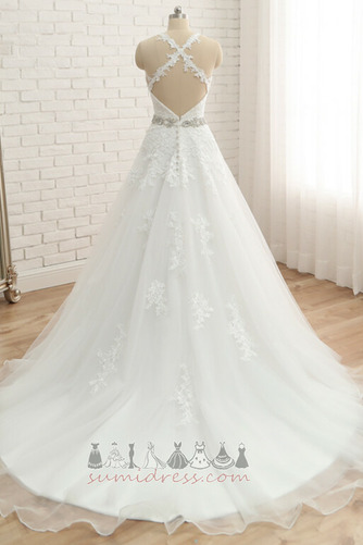Abito da sposa Tulle Lungo Lace Coperta Schiena Nuda lussi Naturale
