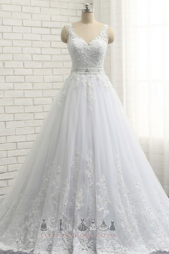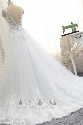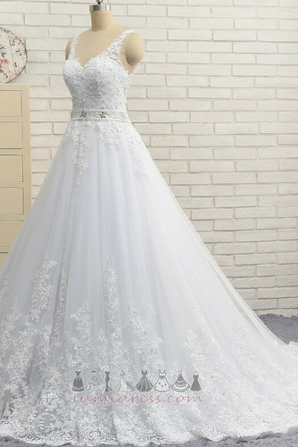 Kāzu kleitas Satīna Kāzu kleitas V kakla Tiesa vilcienu Poga Dabas vidukli Vidējs Formālās Kāzu svārki
