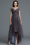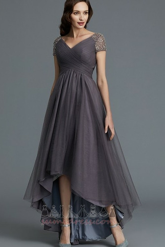 Zipper Up Natural Waist Beading T-shirt Hemline Asymmetrical Chiffon Mother Dress