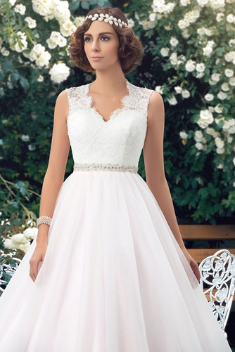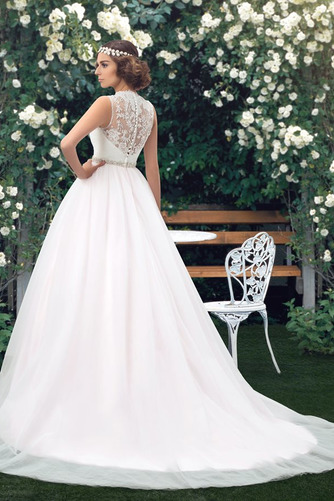 Pakaian pengantin perempuan Terbungkus Lapisan renda Belakang semata-mata Lingkaran manik