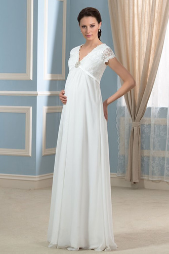 Pakaian perkahwinan Empayar Pinggang Empayar Tingkat panjang Musim panas V-leher Pantai