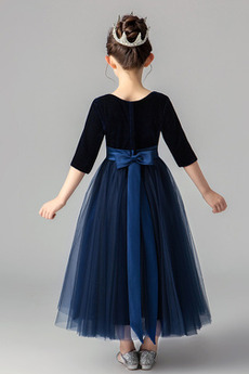 Halvlang Middels A-formet Draped Natural Midje Bow dekorasjon Blomst jente kjole,Blomst jente kjole