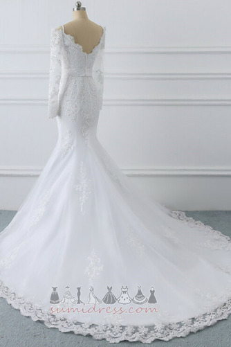 Glidelås Elegante Tyll Usynlig ermer Dyp v-hals Havfrue Bryllupskjole