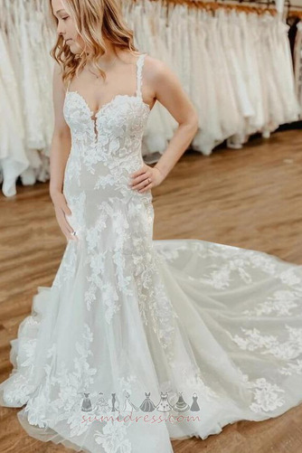 Tyll Havfrue Natural Midje salg Tynne skulderstropper Feie Train Bryllupskjole