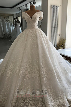 Suknia ślubna Organza Ogród Blask Bez rękawów Katedra Pociąg Koronki nakładki