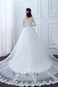 Vestido de casamento Triângulo Invertido Camiseta Missangas Três quartos mangas Off The Shoulder