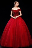 Свадебные платье A-линия Короткие рукава С плеча Лук тюль Природные Талия