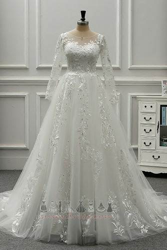 Katedrály vlak Čipka-up Kostol S dlhými rukávmi Ilúzia rukávmi Svadobné šaty