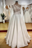 Dolga Dolgimi rokavi Zadrgo navzgor Gumb Satin Poletje Poročne obleko