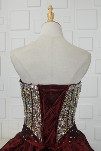 dragulji steznik Ceremonija Sweep vlak Baskovska pasu Črte Taffeta Quinceanera obleko