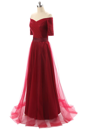 Вечерње хаљине црвен Вечерње хаљине лето Природни Струк Свееп Траин офф рамена средњи Линија Вечерње хаљина