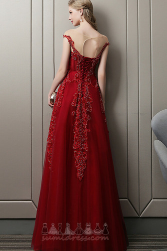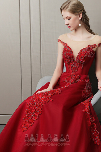 Aftonklänningar A-linjeformat Aftonklänningar Sommar Appliqués Ärmlös Chic Spetsar Overlay V-ringning Kvälls kjol