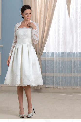 rynkad Långa ärmar Natural Midja Tvådelad llusion ärmar Sommar Bröllopsklänning