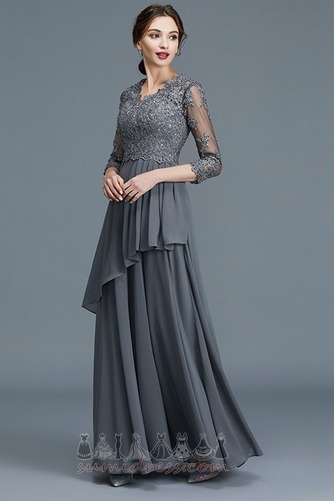 Spetsar Overlay Formella llusion ärmar Dragkedja Långa ärmar Chiffong Mor klänning