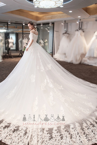 omuz kapalı Dantel Uzun Bir çizgi Bağcıklı Boncuk Gelinlik