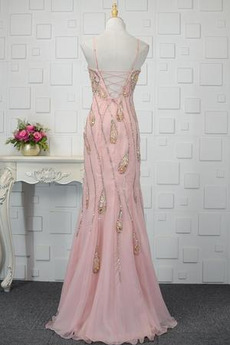 Zarif Boncuk Bağcıklı Kat uzunluğu Dantel kaplaması Süpürme tren Gece elbisesi