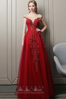 omuz kapalı Parti Kat uzunluğu Bir çizgi Süpürme tren Dantel Gece elbisesi