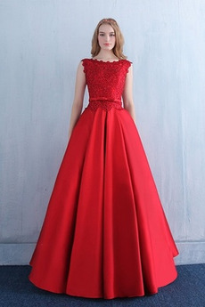 Bir çizgi Bağcıklı Saten Basit Süpürme tren Boncuklu kemer Gece elbisesi