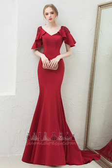 Düğün Bol dökümlü omuz kapalı Kısa kollu Bir çizgi Saten Gece bezi