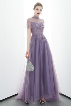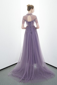Zarif Boncuk Bağcıklı Kat uzunluğu Dantel kaplaması Süpürme tren Gece elbisesi