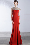 Bol dökümlü Doğal belden mücevherli korse Mücevher Sonbahar Uzun Gece elbisesi