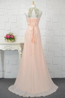 Fermuar yukarıya Bir çizgi Şifon Doğal belden Zarif Mücevher Gece elbisesi