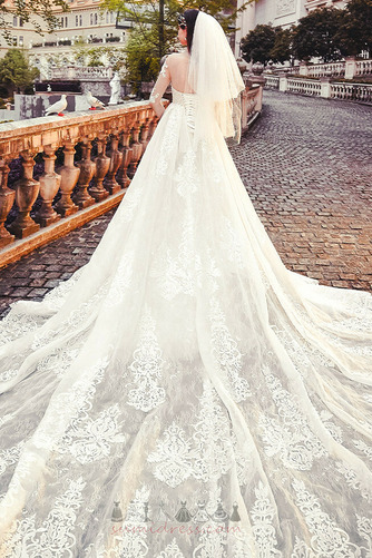 Мереживо Overlay розгортки поїзд V-подібним вирізом Довго падати простий Весільна сукня