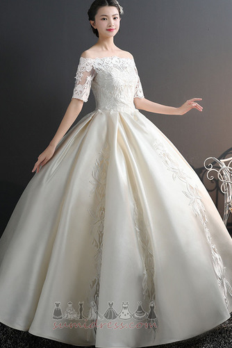 Весільна сукня атлас Весільна сукня зал аплікації природні Талія формальний Мереживо Overlay атлас Весільна сукня