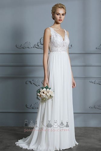Backless Natural Waist Lace Lace Overlay V-Neck Beach Wedding Dress